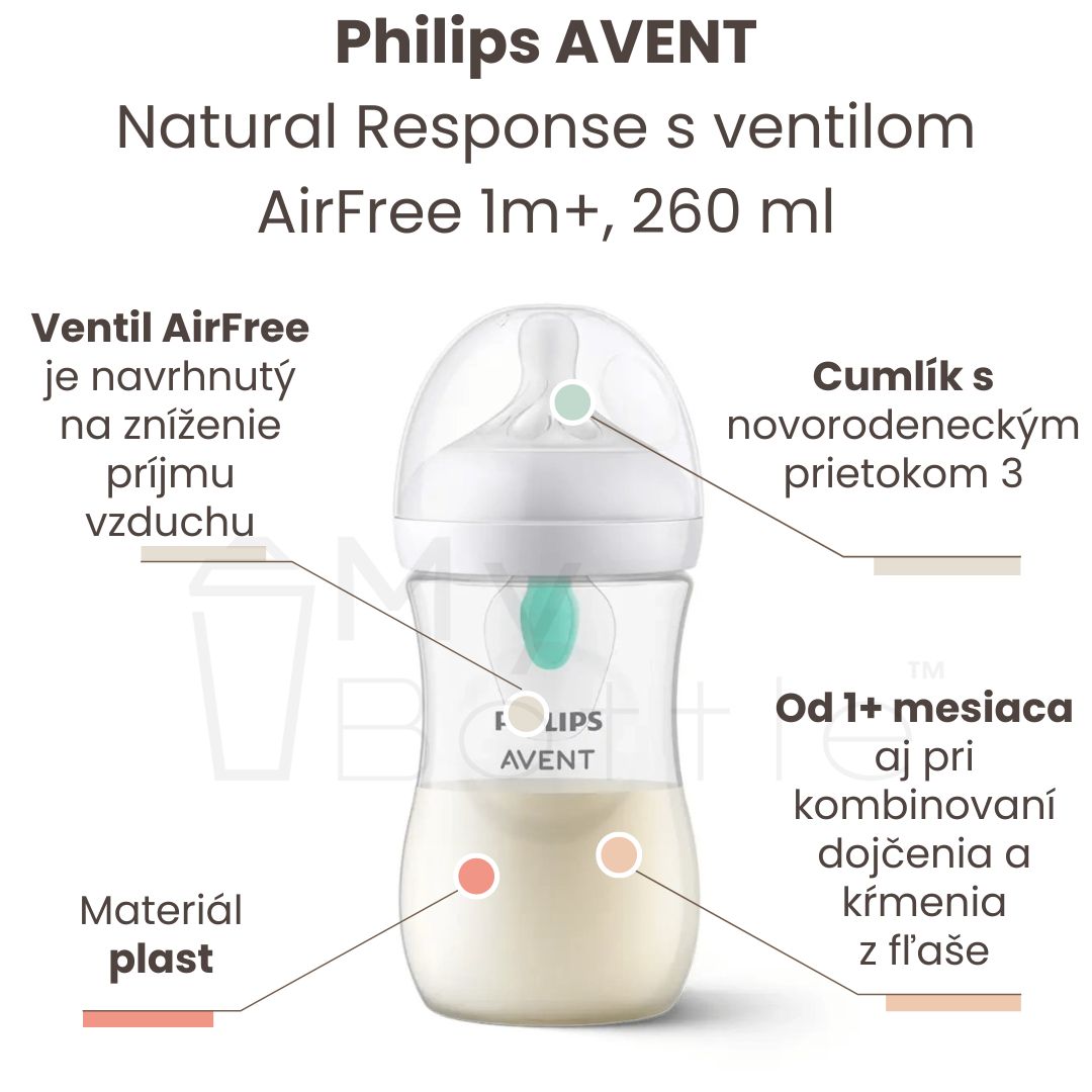 Táto dojčenská fľaša je vhodná ak potrebujete kombinovať dojčenie s kŕmením bábätka z fľaše. Cumlík Natural Response fľaše je navrhnutý tak, aby pripomínal ženský prsník. Tým sa zabezpečí, že dieťa naďalej prirodzene pohybuje a zapája rovnaké svaly a jazyk ako pri dojčení, a tiež využíva sací reflex. Cumlík uvoľňuje mliečko len vtedy, keď dieťatko saje.