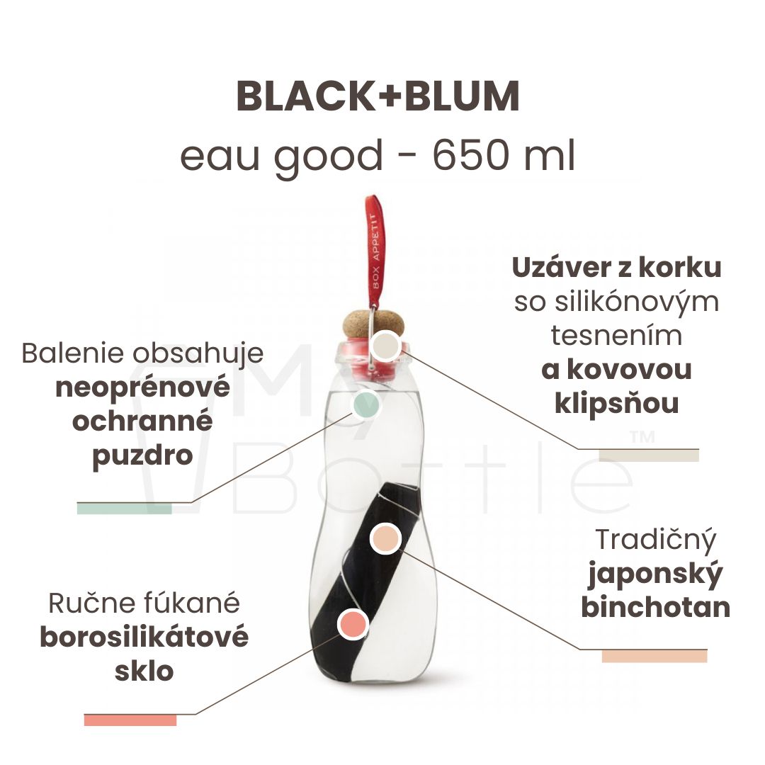 Fľaša na vodu s binchotánom BLACK+BLUM eau good, sklo - 650 ml