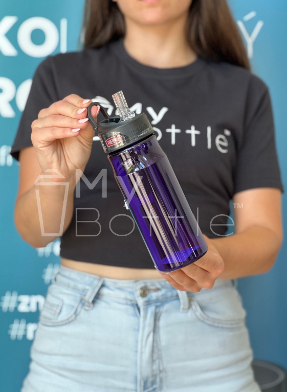 Plastová fľaša na vodu od značky Thermos, reaguje na potreby hydratácie pri športe. Je navrhnutá tak, aby spĺňala potreby športovcov - možnosť rýchlej hydratácie počas výkonu, bez zložitého otvárania a zatvárania fľaše. Preto je fľaša navrhnutá s vyklápacou slamkou, ktorú otvoríte jednou rukou.