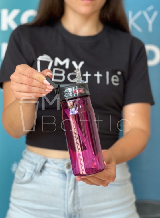 Plastová fľaša na vodu od značky Thermos, reaguje na potreby hydratácie pri športe. Je navrhnutá tak, aby spĺňala potreby športovcov - možnosť rýchlej hydratácie počas výkonu, bez zložitého otvárania a zatvárania fľaše. Preto je fľaša navrhnutá s vyklápacou slamkou, ktorú otvoríte jednou rukou.
