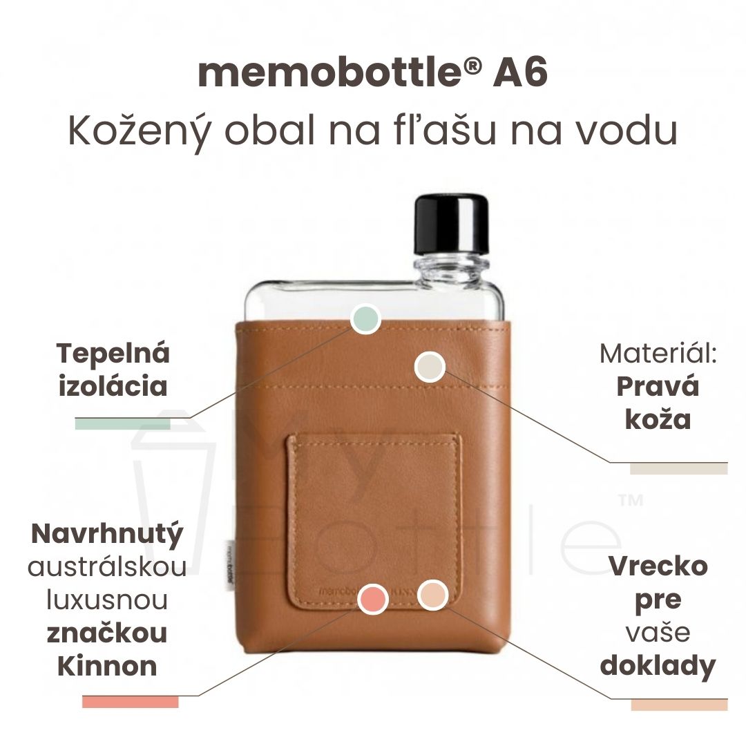 Obal z pravej zrnitej kože spraví z vašej fľaše memobottle A6 luxusný a elegantný dizajnový kúsok.