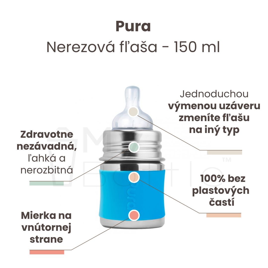 Pura® nerezová dojčenská fľaša - aqua 150 ml