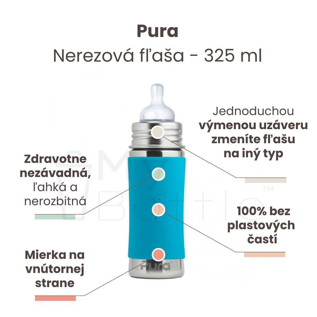 Pura® nerezová dojčenská fľaša aqua 325 ml