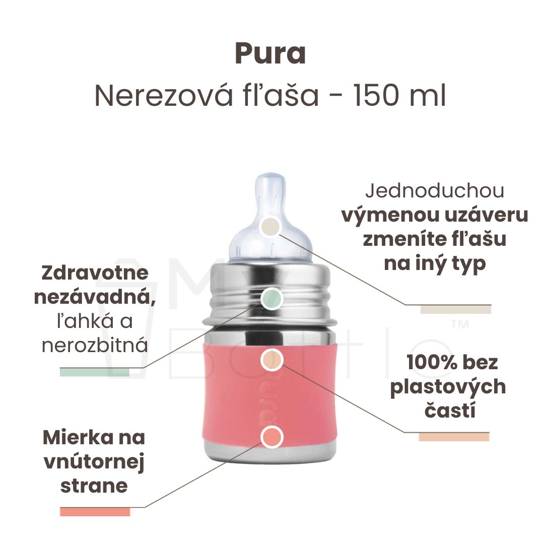 Pura® nerezová dojčenská fľaša - rose 150 ml