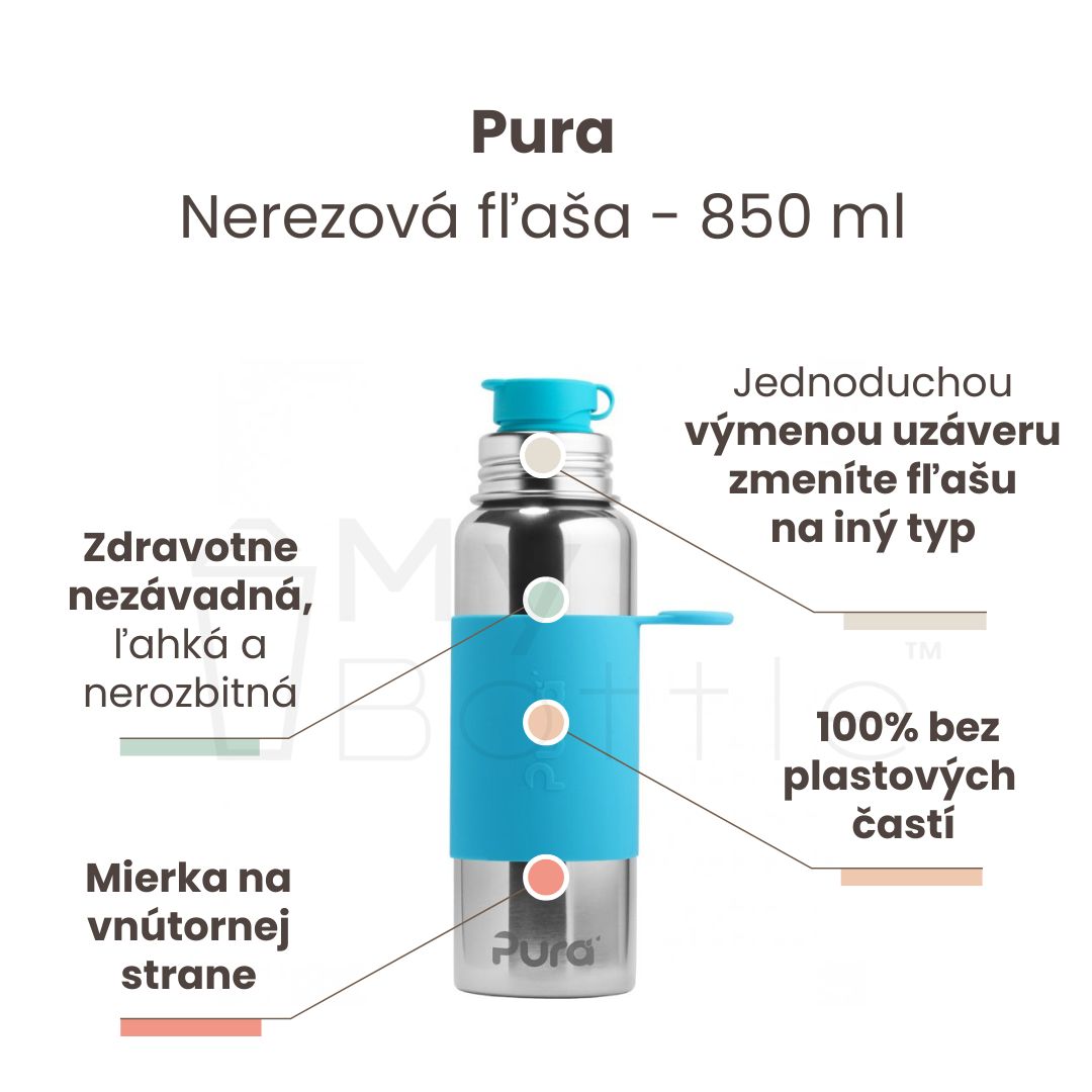 Nerezová fľaša do školy so športovým uzáverom Pura - aqua 850 ml