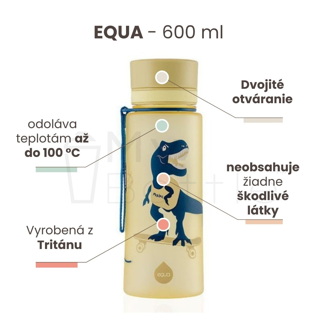 Plastová fľaša do školy s uzáverom - EQUA Dino 600 ml