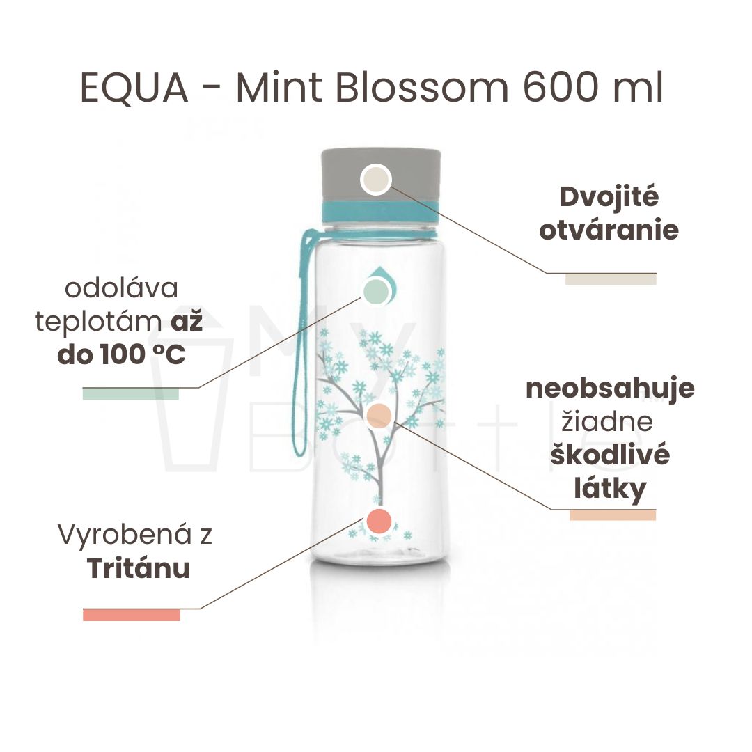 Plastová fľaša do školy s uzáverom - EQUA Mint Blossom 600 ml
