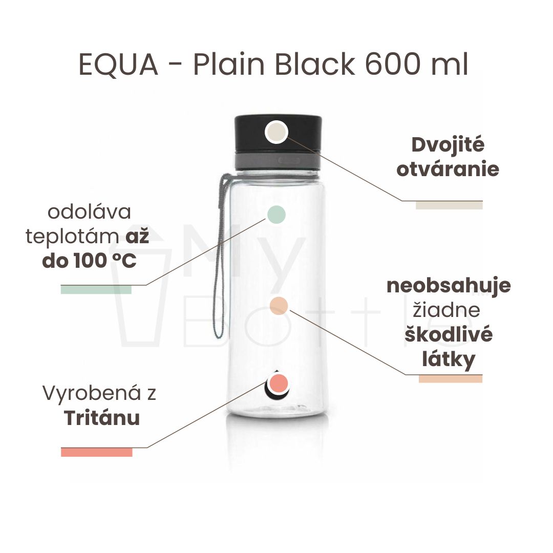 Plastová fľaša do školy s uzáverom EQUA - Plain Black 600 ml
