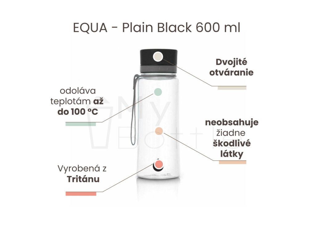 Zdravotne nezávadná fľaša EQUA je vyrobená z organických materiálov a neobsahuje žiadne škodlivé látky ako napríklad BPA, ktoré sa nachádzajú v niektorých plastoch.