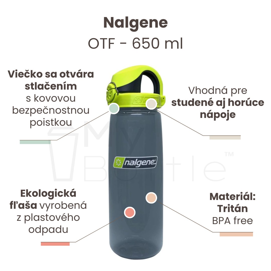 Plastová fľaša Nalgene OTF 650ml je praktická vďaka svojmu unikátnemu systému viečka OTF, ktoré jednoducho a rýchlo otvoríte stlačením. Obsahuje aj bezpečnostnú poistku, ktorá zabezpečí bezpečné prenášanie fľaše.