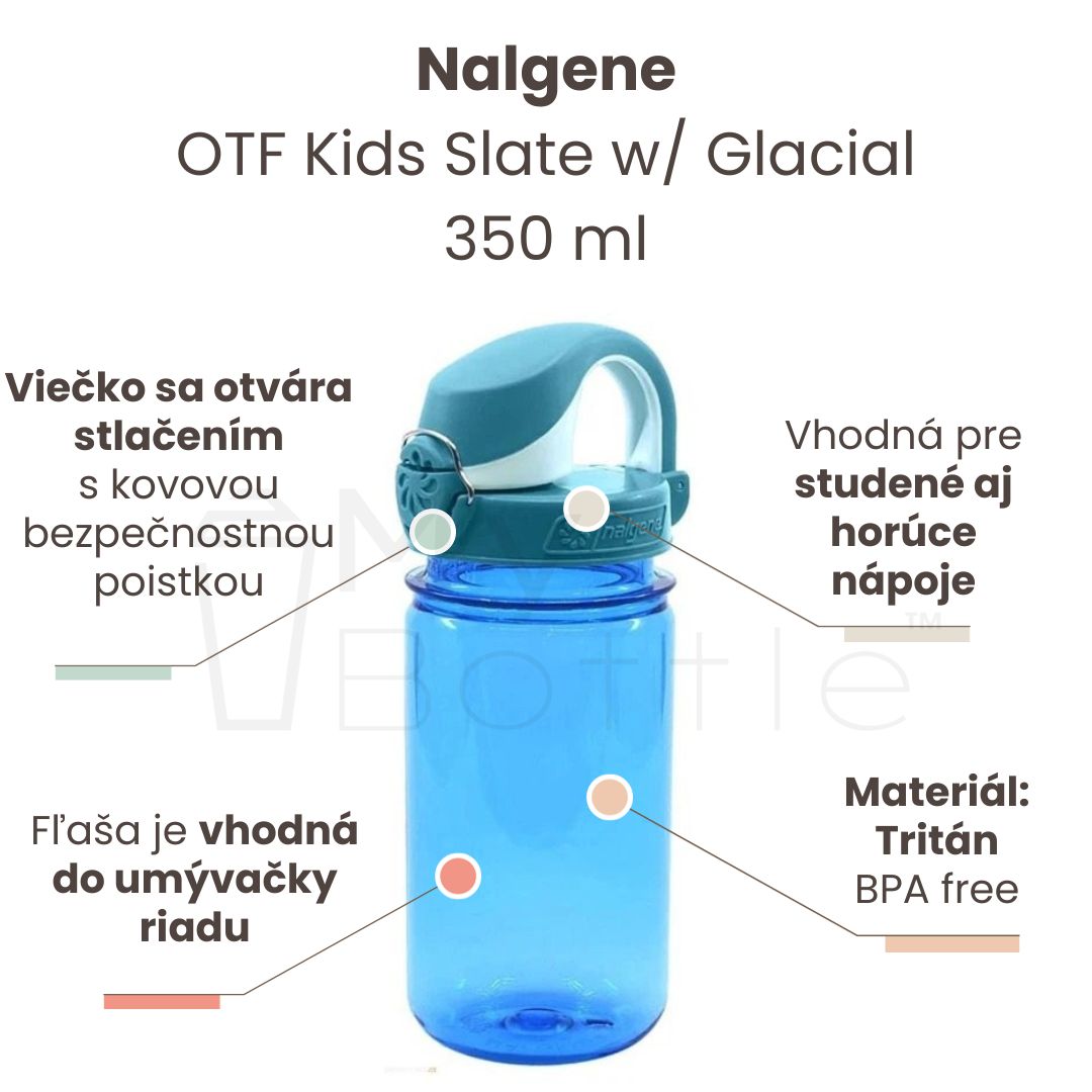 Detská plastová fľaša Nalgene 350 ml je praktická vďaka svojmu unikátnemu systému viečka OTF, ktoré jednoducho a rýchlo otvoríte stlačením. Obsahuje aj bezpečnostnú poistku, ktorá zabezpečí bezpečné prenášanie fľaše. Otvor na pitie je užší, vďaka čomu je praktický na pitie pre deti.