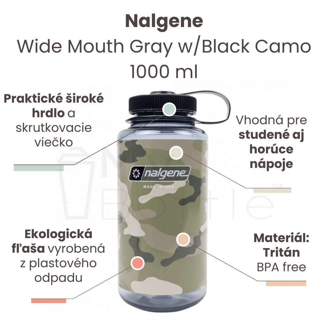 Plastová fľaša Nalgene - Wide Mouth Gray w/Black Camo - 1000 ml