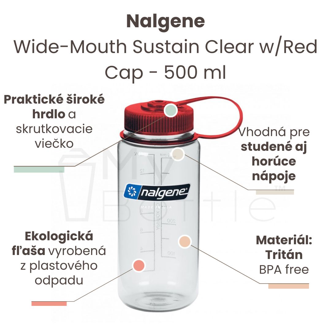 Plastová fľaša Nalgene - Wide-Mouth Sustain Clear w/Red Cap - 500 ml