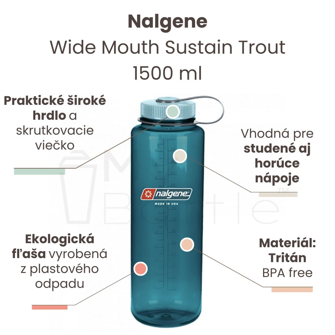 Plastová fľaša Nalgene - Wide Mouth Sustain Trout - 1500 ml