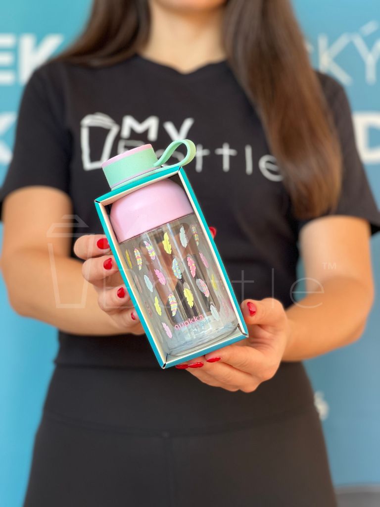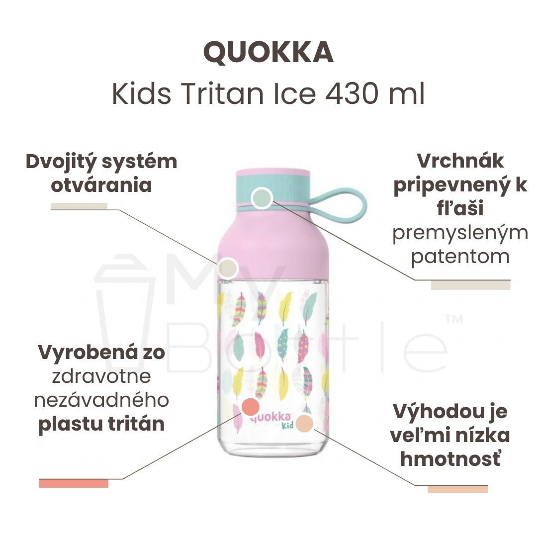 Plastová fľaša QUOKKA Kids Tritan Ice With Strap - Feathers 430 ml