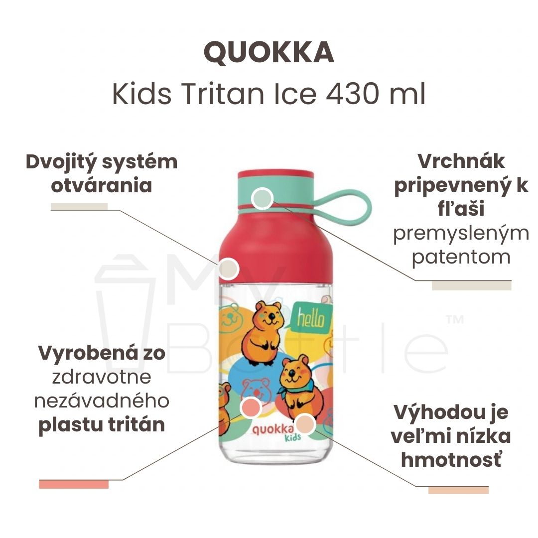 Plastová fľaša QUOKKA Kids Tritan Ice With Strap - Happy Quokka 430 ml