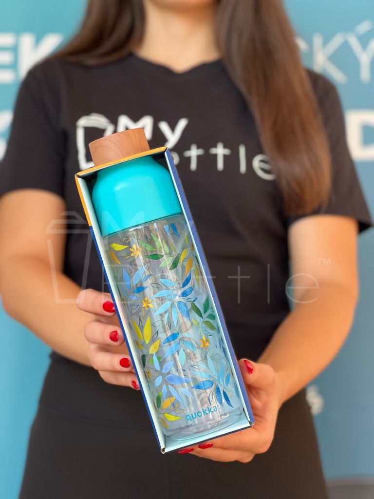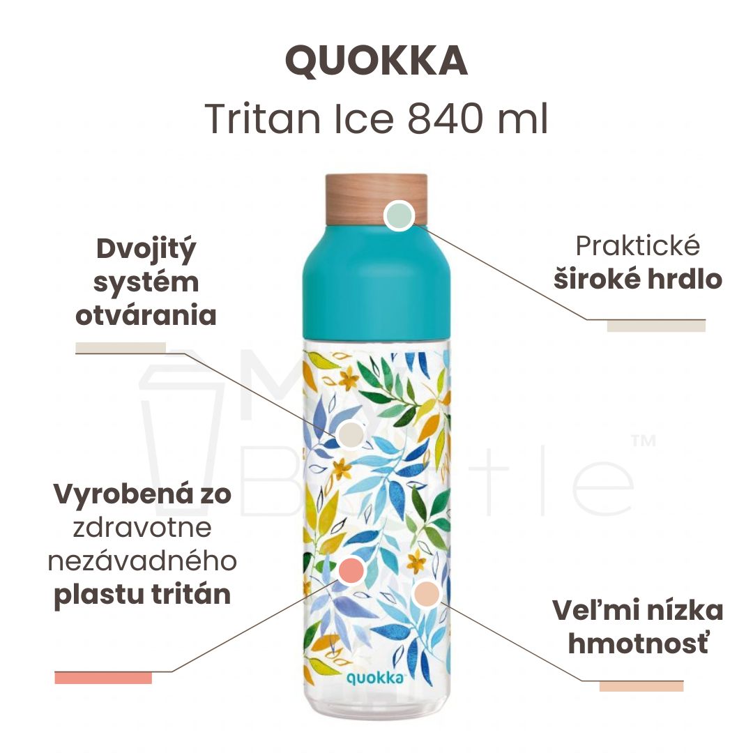 Plastová fľaša QUOKKA Tritan Ice - Watercolor Leaves 840 ml