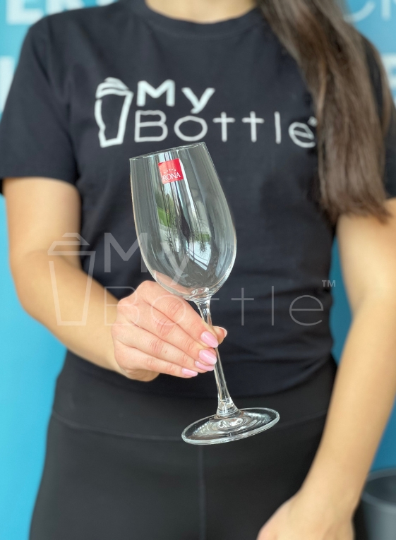 Pohár na víno RONA má objem 440 ml a je vyrobený z bezolovnatého krištalínového nápojového skla.