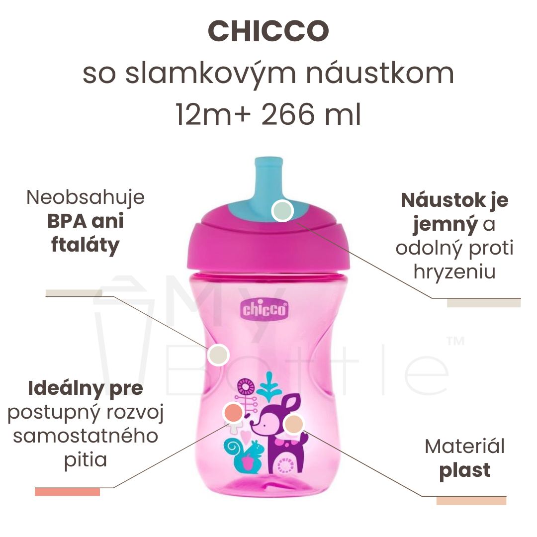 Hrnček Chicco so slamkovým náustkom je vhodný pre deti od 12 mesiacov.