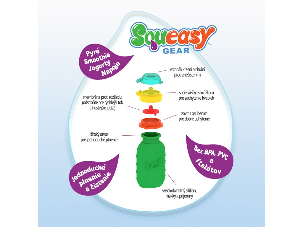 Squeasy Gear silikónová kapsička je skvelým a praktickým pomocníkom pre zdravé kŕmenie detí, nech ste v škole či škôlke, doma, vonku, alebo na cestách.