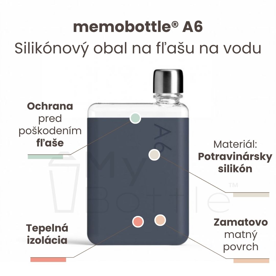 Silikónový obal na fľašu na vodu Memobottle® A6 dodá vašej fľaši osobnosť a zároveň ju ochráni pred nárazmi a ošúchaním.