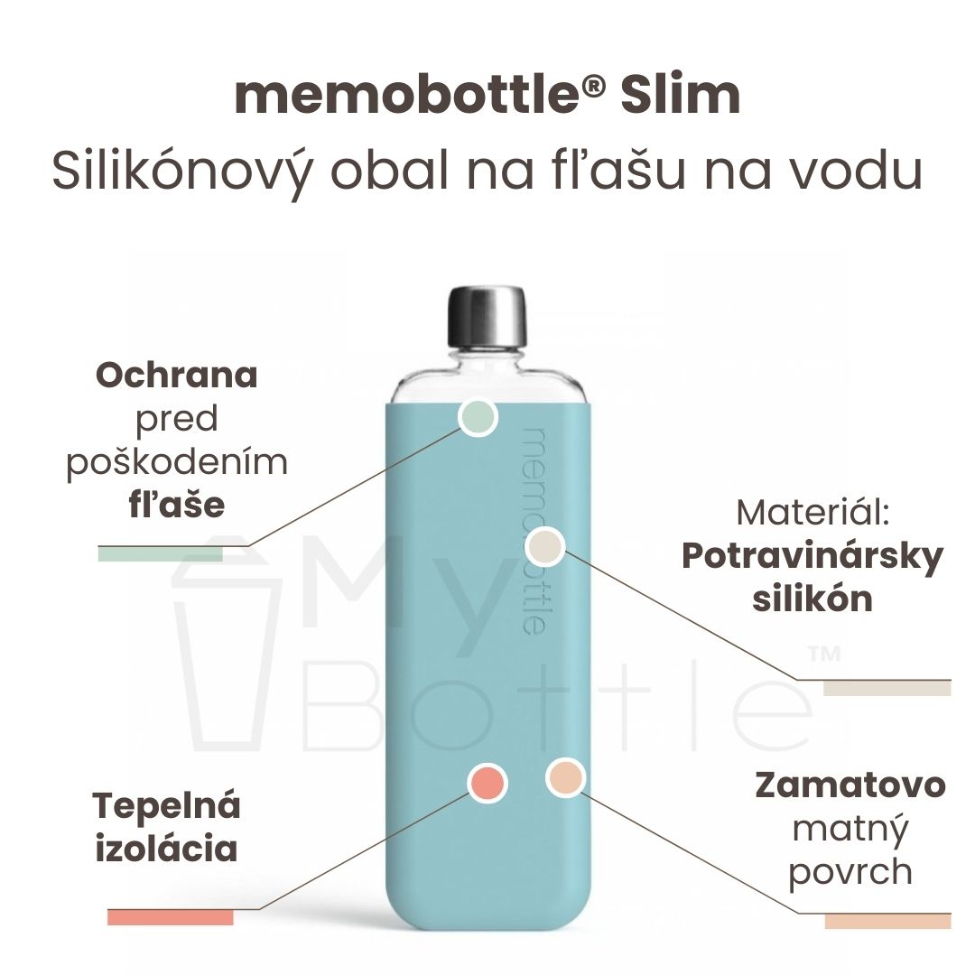 Silikónový obal na fľašu na vodu Memobottle® Slim dodá vašej fľaši osobnosť a zároveň ju ochráni pred nárazmi a ošúchaním.