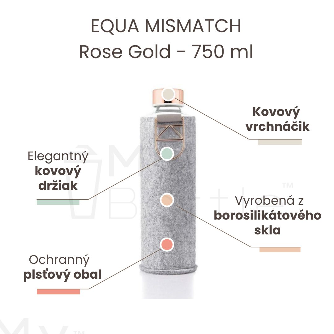 Sklenená fľaša s uzáverom EQUA MISMATCH - Rose Gold 750 ml