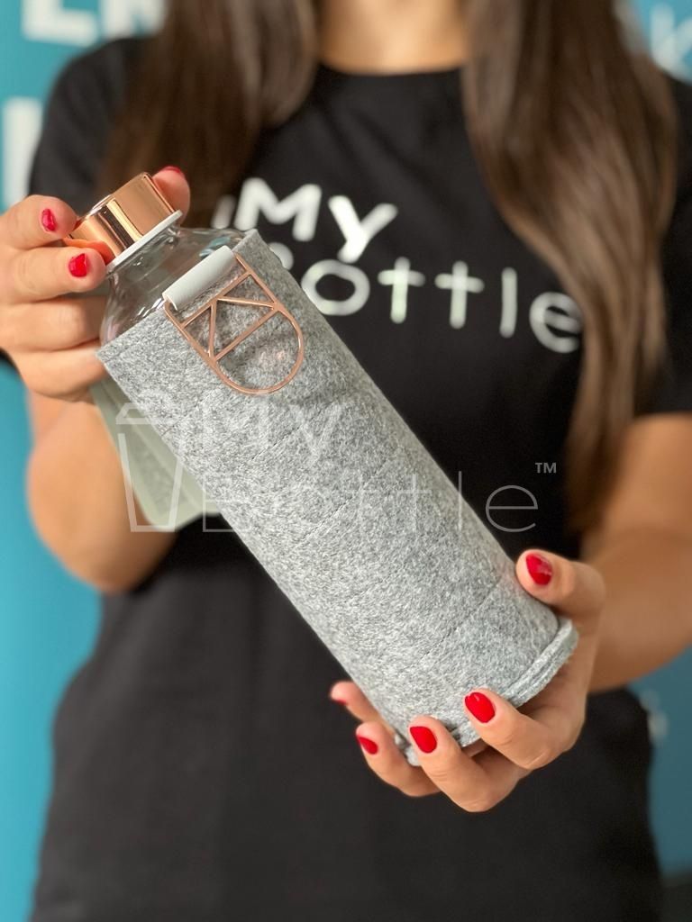 Fľaša EQUA Mismatch s plsťovým obalom je vyrobená z teplotne odolného borosilikátového skla.