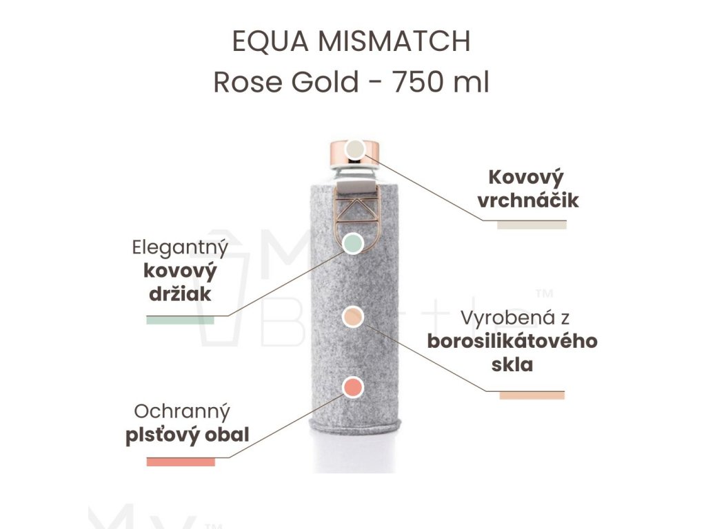 Fľaša EQUA Mismatch je vyrobená z borosilikátového skla. Je zdravotné nezávadná, ľahká a odolná voči vysokým teplotám.