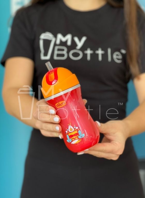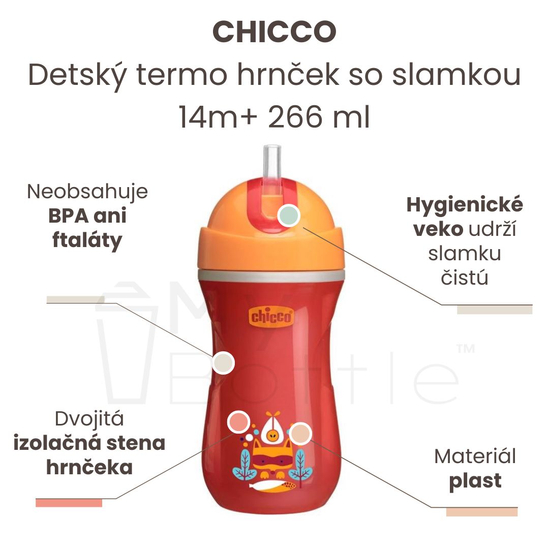 Športový detský termo hrnček so slamkou CHICCO , červený 14m+ 266 ml