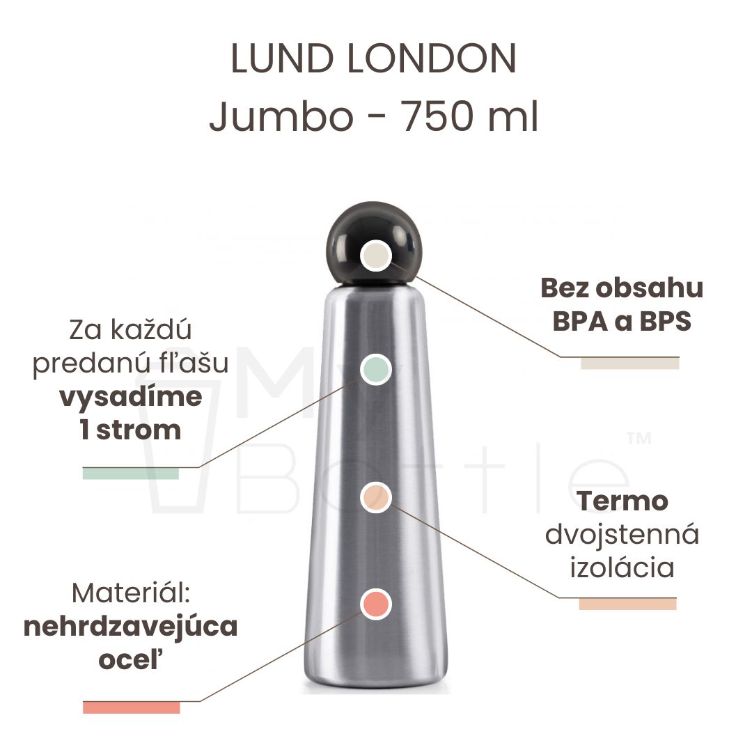 Ručne dotvorená termo fľaša LUND LONDON Jumbo 750 ml - Stainless Steel & Midnight Black