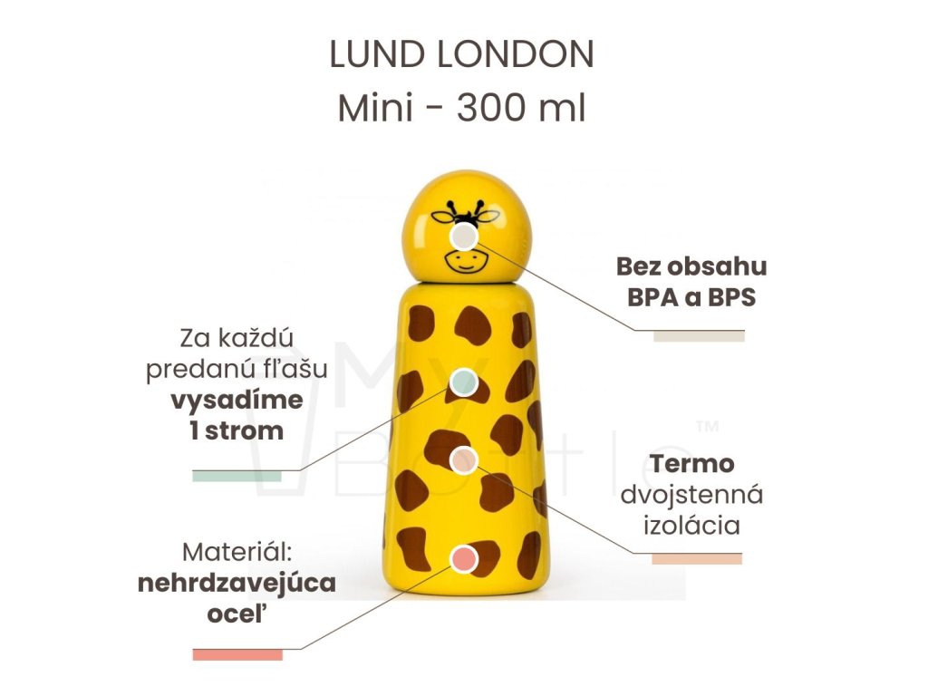 Ručne dotvorená termo fľaša LUND LONDON Skittle Bottle Mini - Giraffe 300 ml