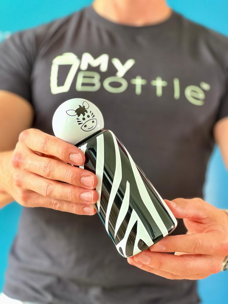 Ručne dotvorená termo fľaša LUND LONDON Skittle Bottle Mini - Zebra 300 ml