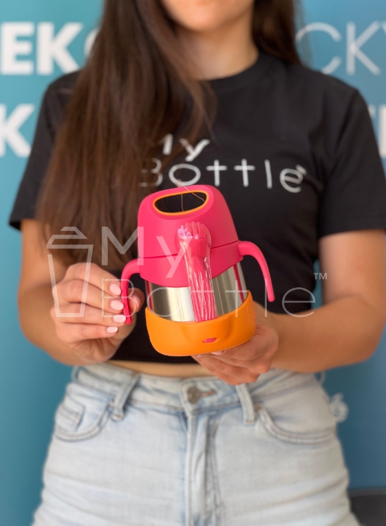 Skrutkovací uzáver zaistí bezpečnosť proti vyliatiu pri prenášaní. S praktickou vidličko/lyžičkou.