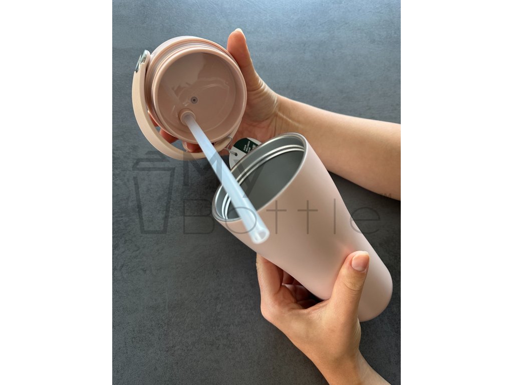 Skrutkovacie viečko, vyklápacia slamka a rukoväť . Moderné dizajnové a funkčné prevedenie zaistí, že váš nápoj sa nevyleje.