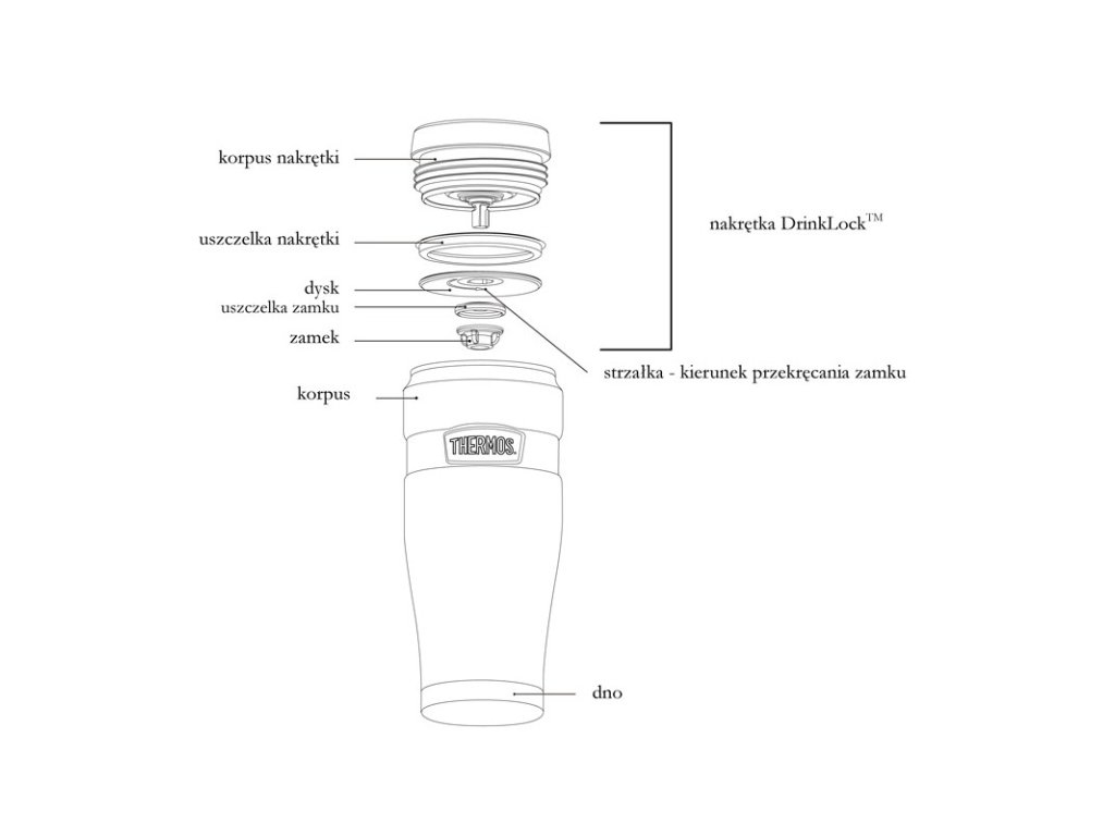 Uzáver je skrutkovací, vďaka čomu je termohrnček nepriepustný. Dá sa úplne rozobrať, pre jednoduché a dôkladné čistenie.