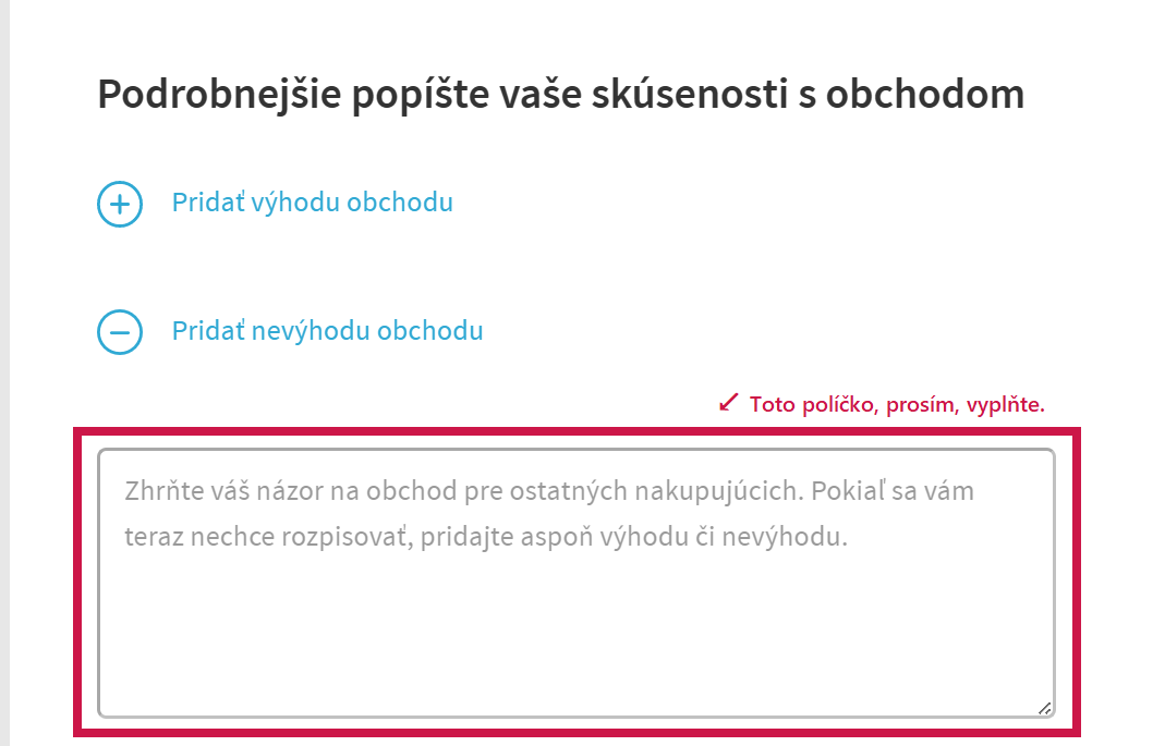 2. Po tom, čo obdržíte e-mail od HEUREKA, vyplňte Heureka dotazník. Je potrebné vyplniť aj časť "Podrobnejšie popíšte vaše skúsenosti s obchodom", a teda pridať aj slovné hodnotenie.